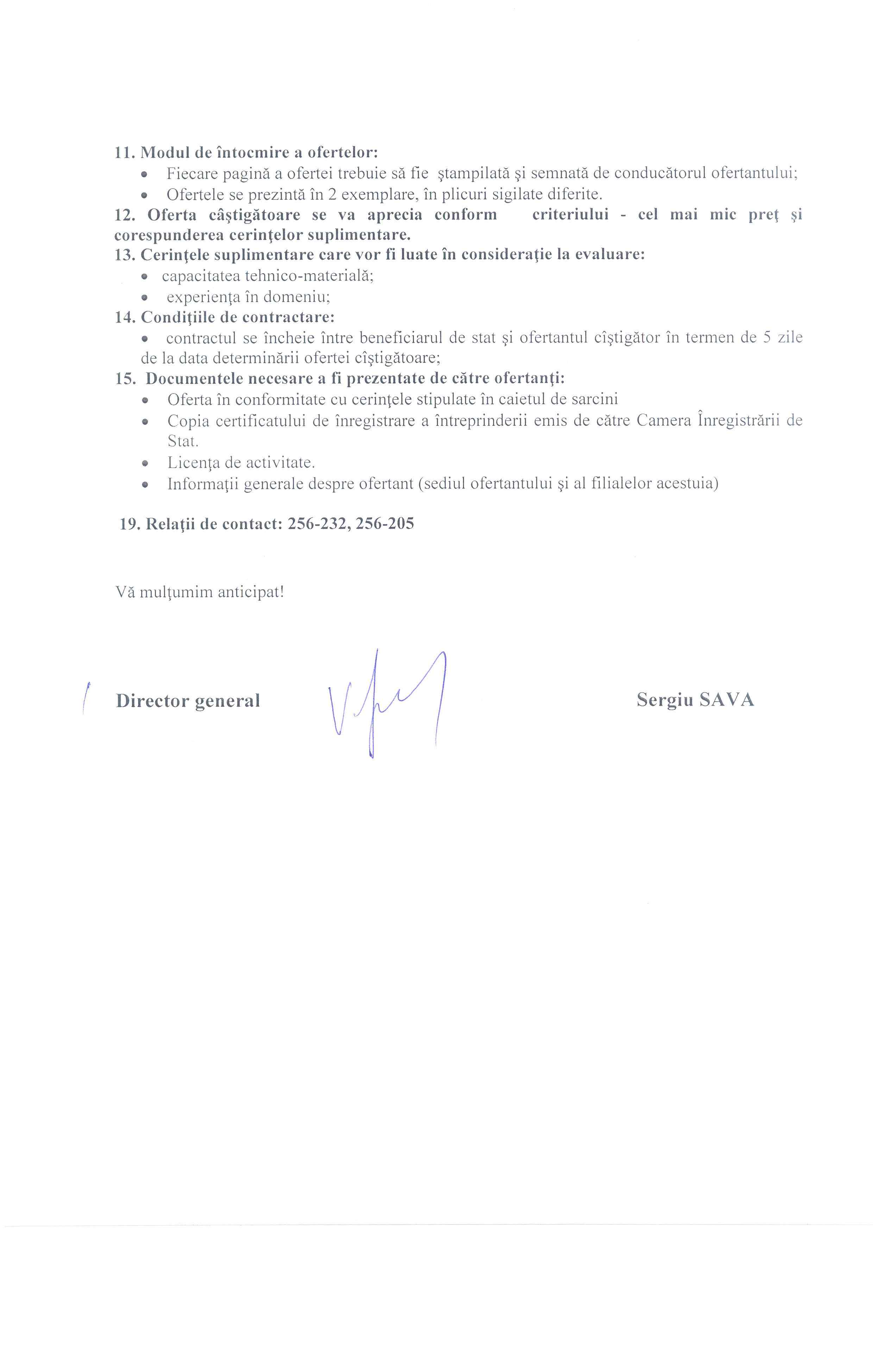 Informaţii suplimentare la telefonul 022-256-205