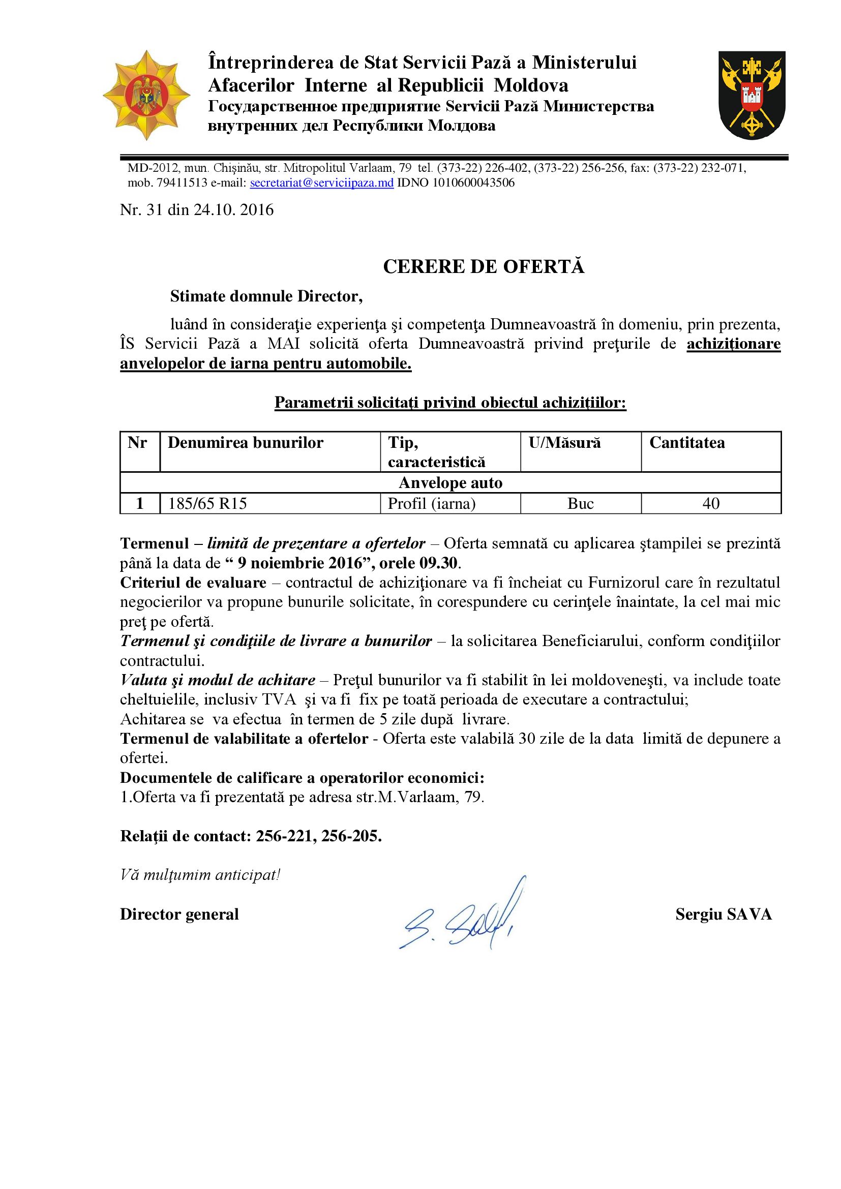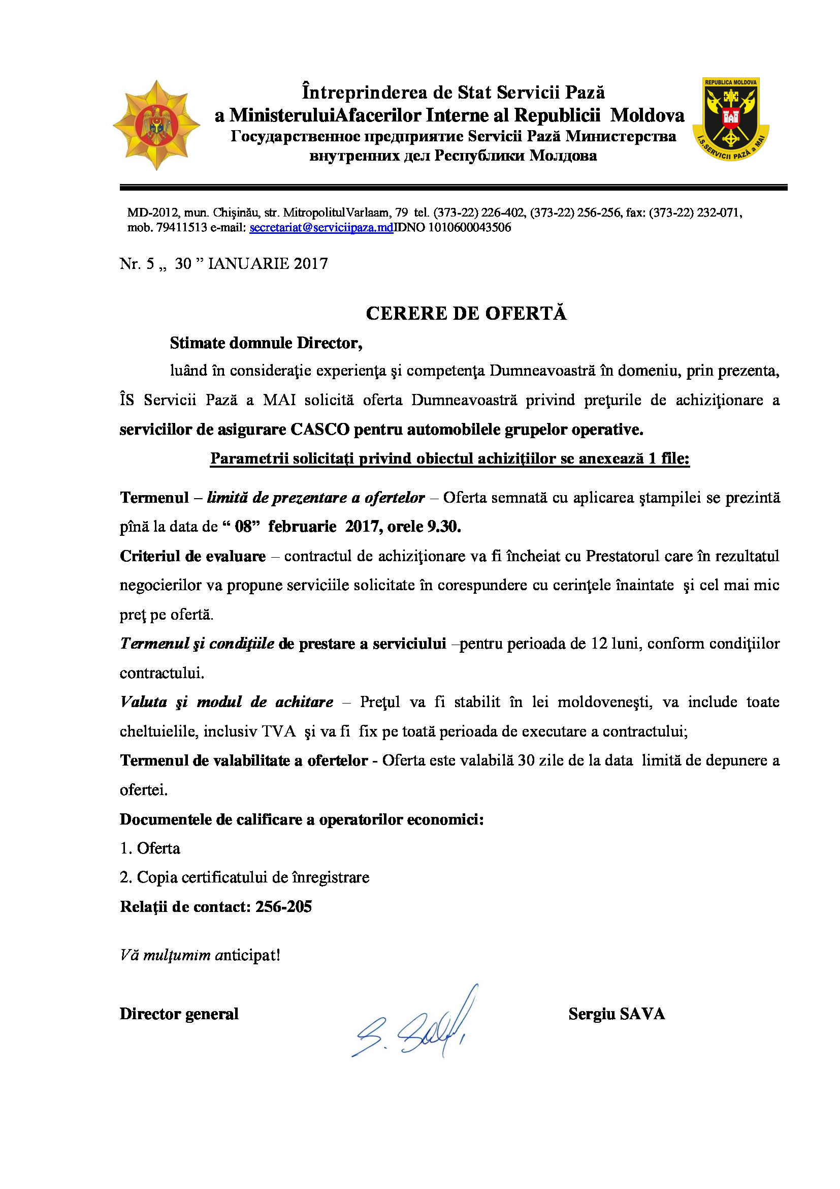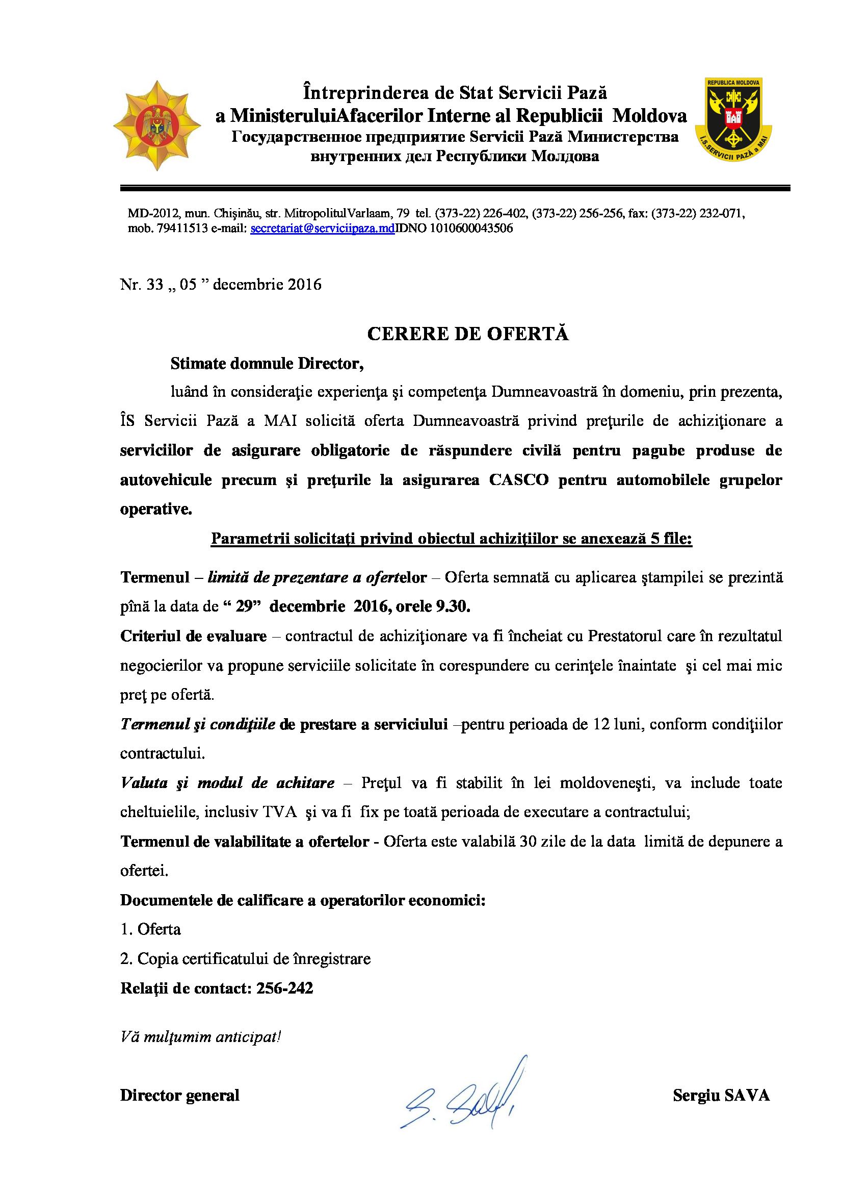 CERERE DE OFERTA privind preţurile de achiziţionare a serviciilor de asigurare CASCO