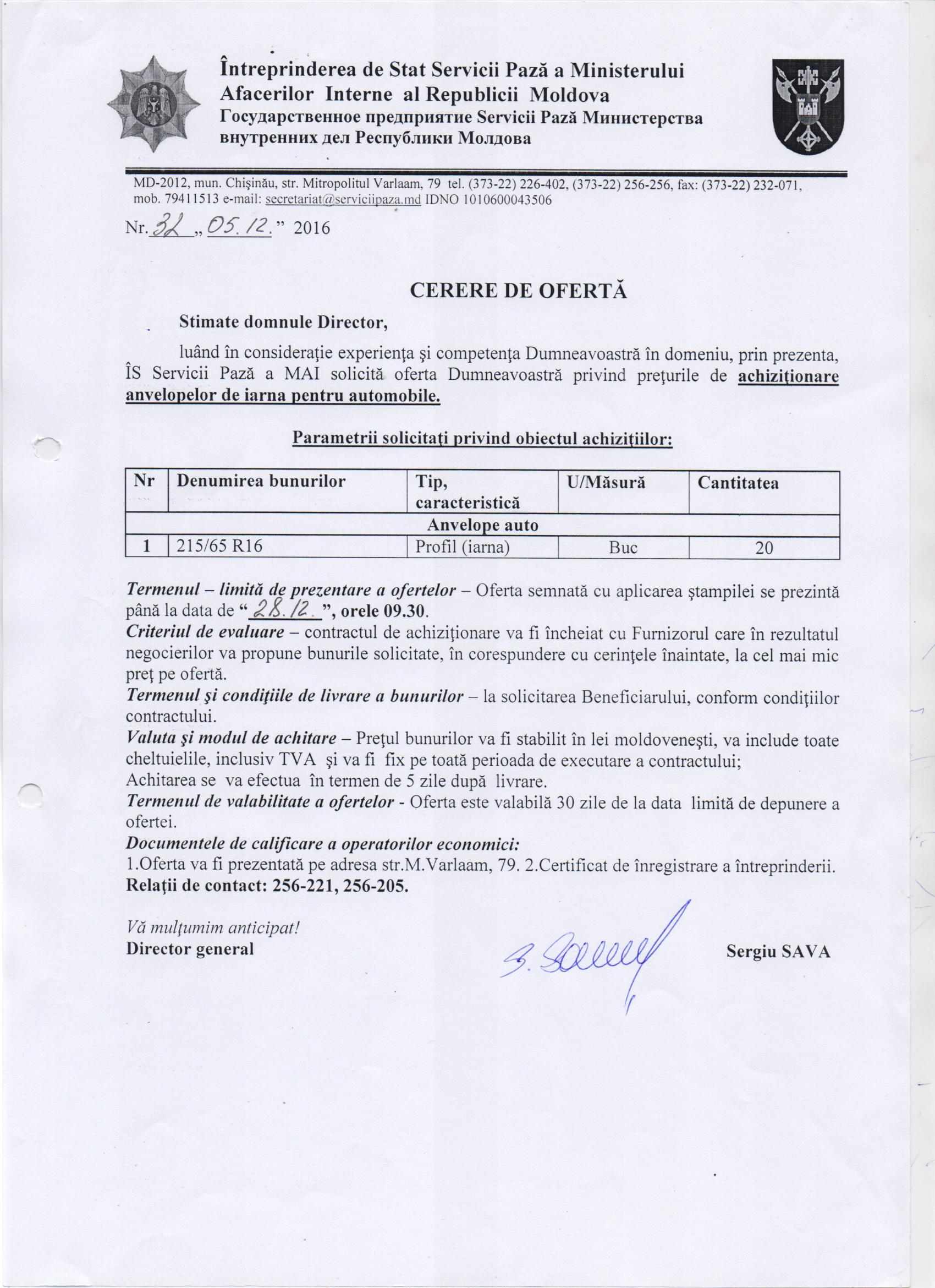 CERERE DE OFERTĂ privind achiziţionarea mijloacelor de transport