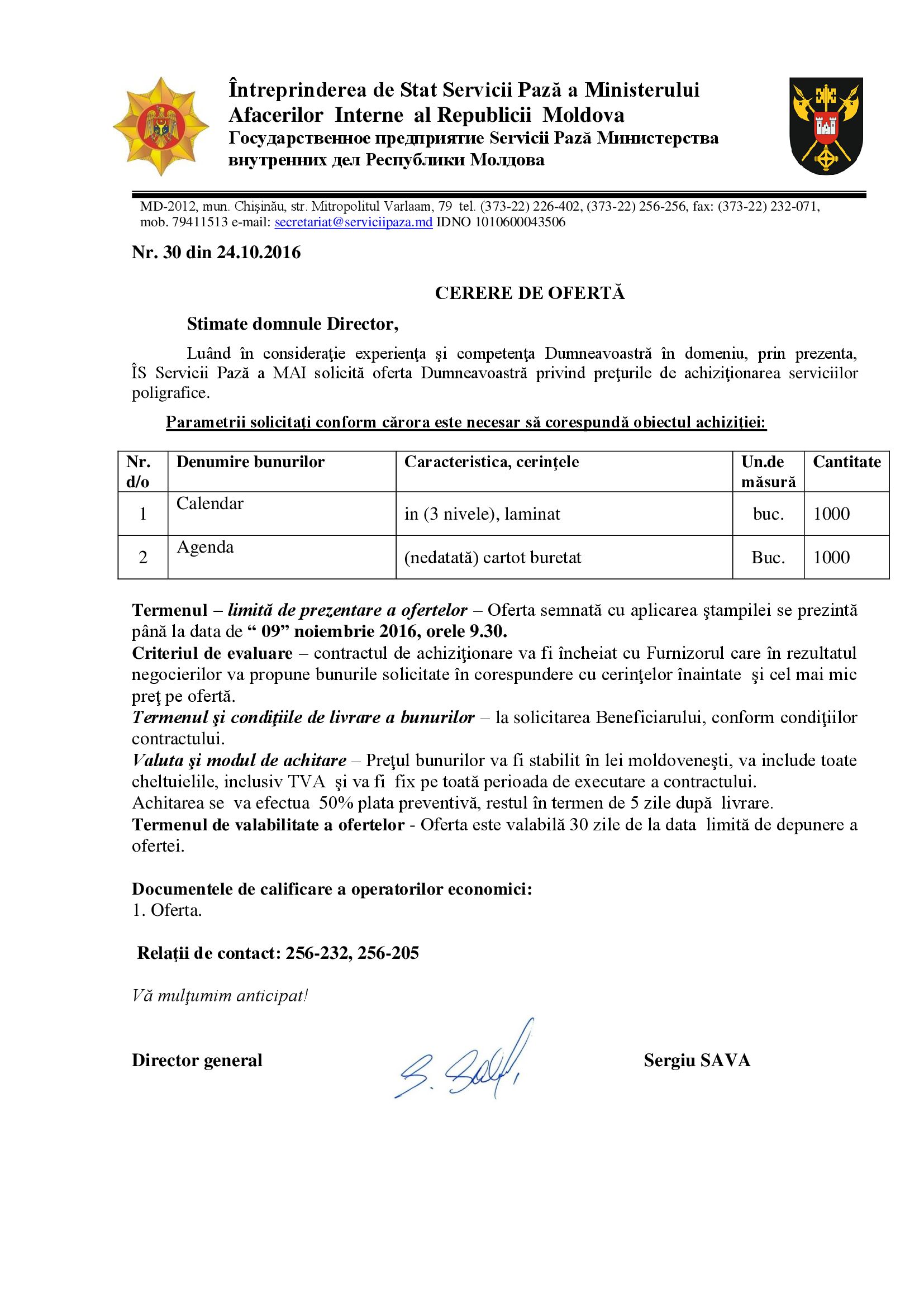 CERERE DE OFERTA privind achiziționarea echipamentului