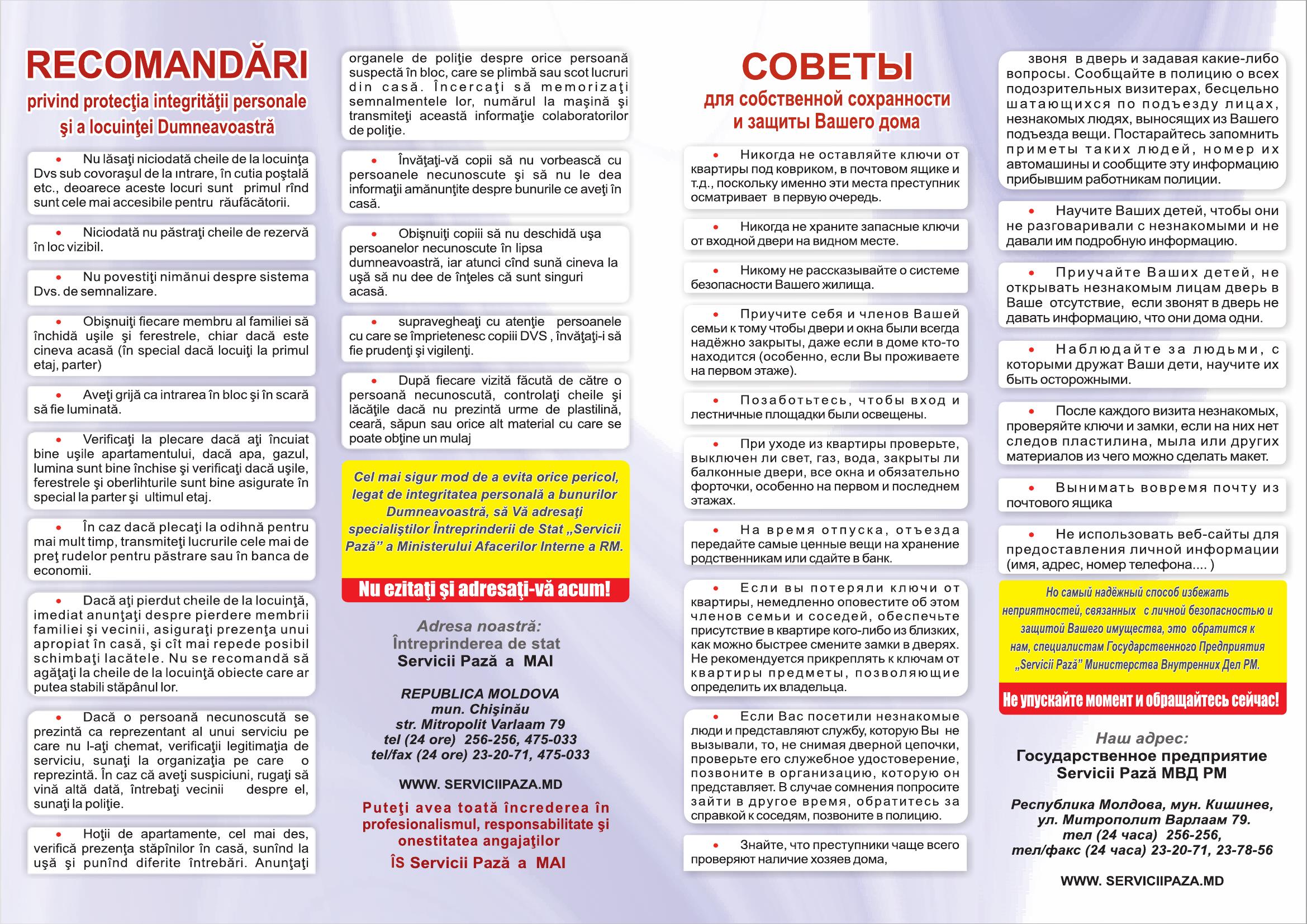 Recomandări privind protecția integrității personale și a locuinței Dumneavoastră