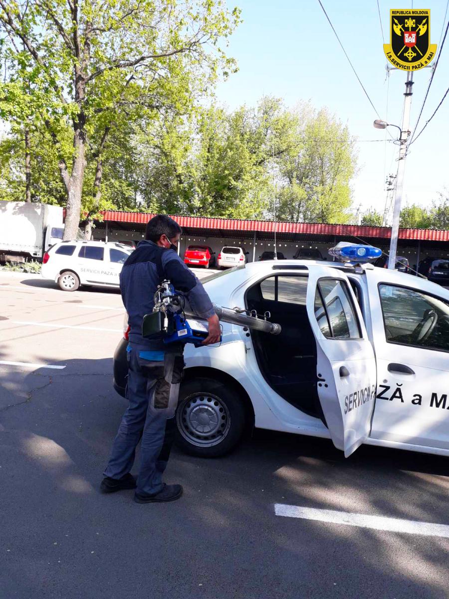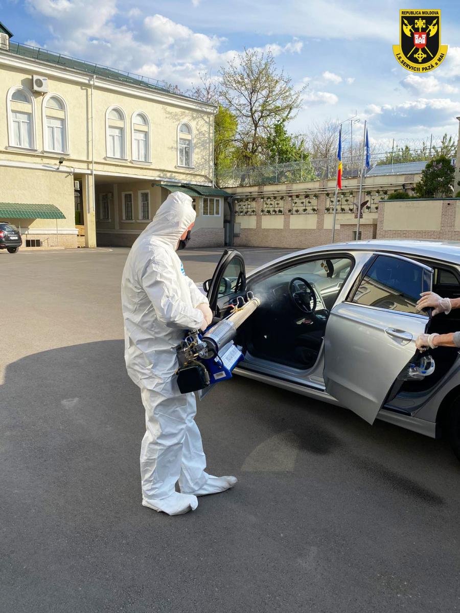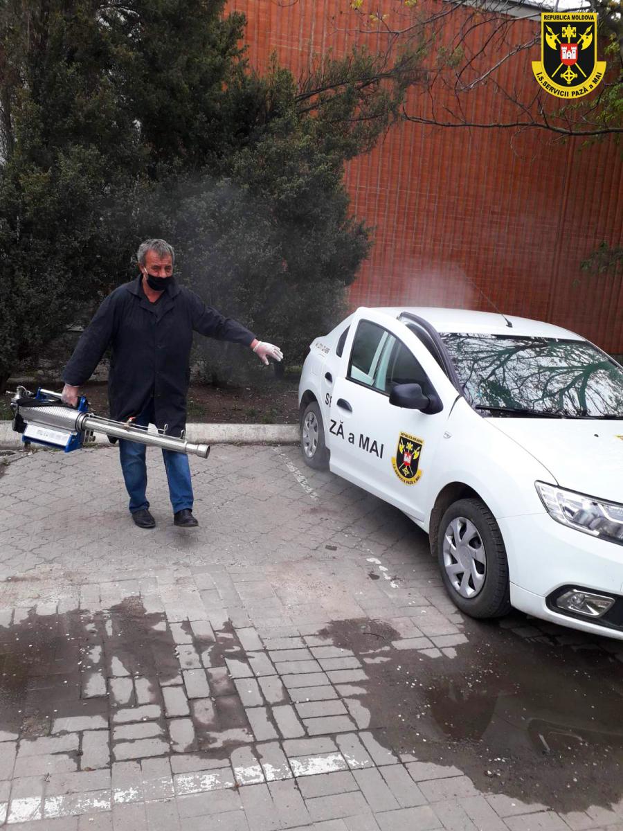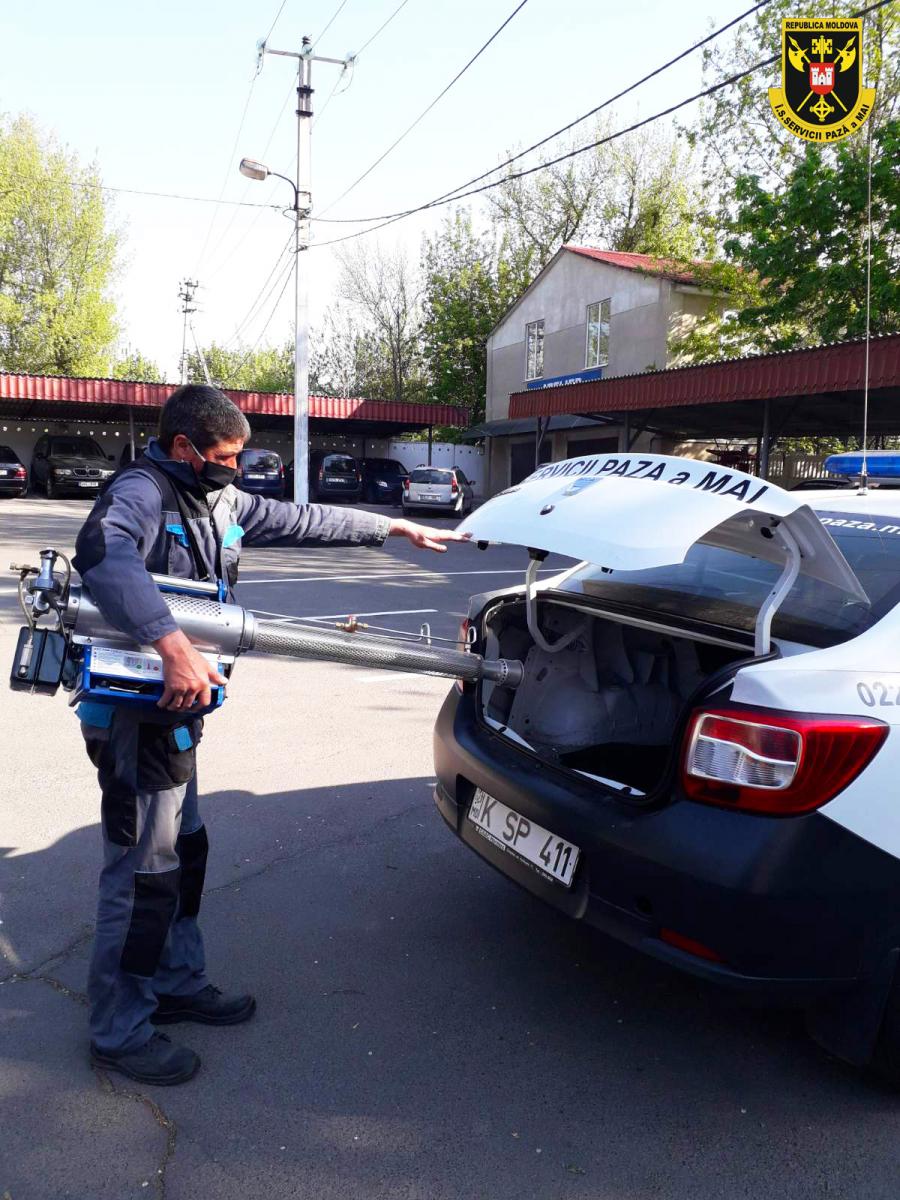 De asemenea, încăperile și edificiile subdiviziunilor situate în mun. Chișinău, automobilele de serviciu și echipele grupelor operative, sunt sistematic supuse prelucrării cu dispozitivul de dispersare forțată a dezinfectanților. În mod de cooperare prin conjugarea eforturilor comune în combaterea pandemiei, au fost supuse prelucrării de dezinfectare prin dispersarea forțată și o serie de autoturisme din dotarea Inspectoratului General de Poliție.