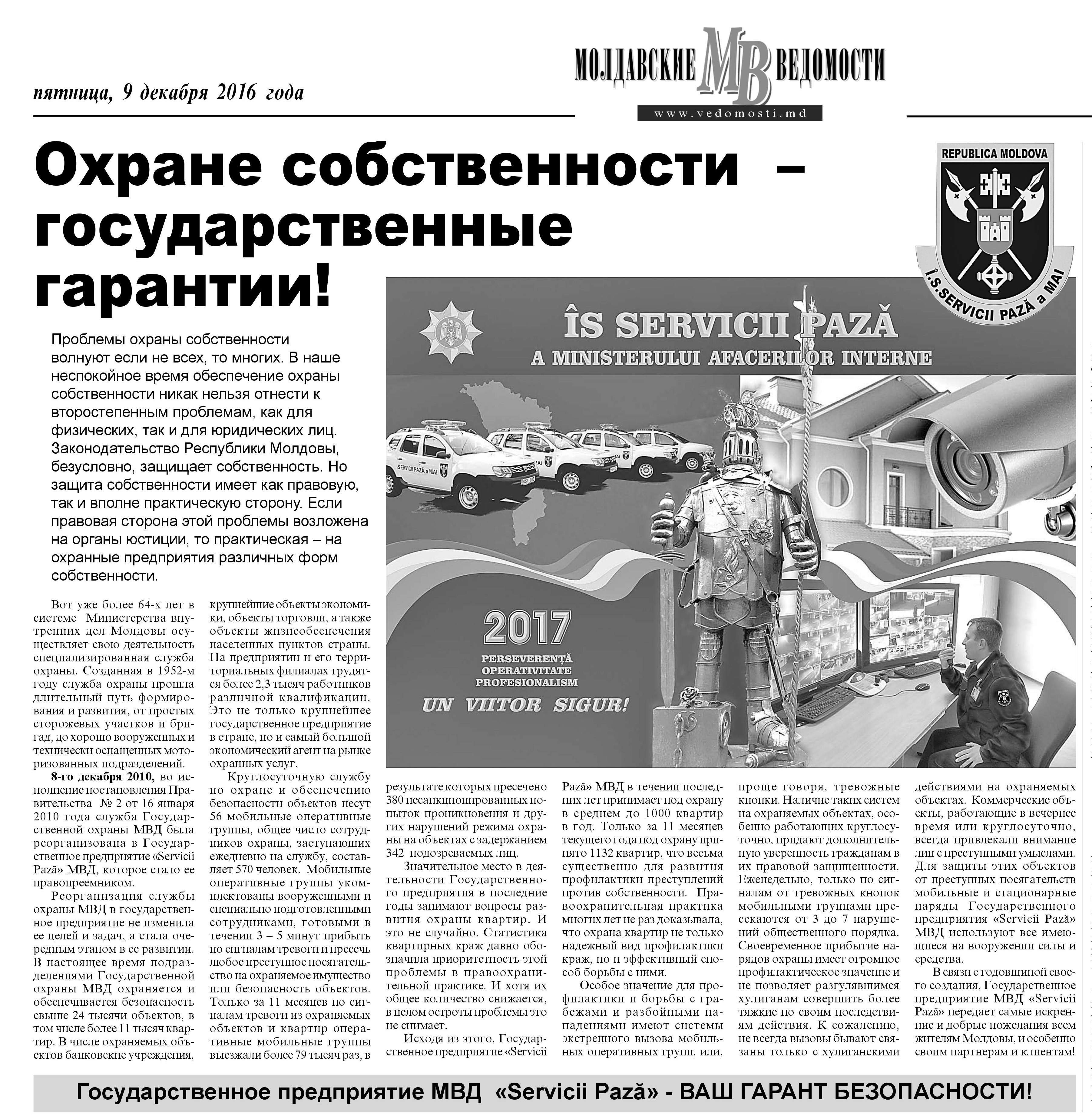 Succesele obținute în rezultatul activității IS Servicii Pază a MAI